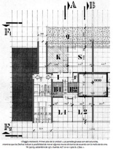 Tanto la escala urbana como la arquitectónica son reguladas en detalle mediante una trama en planta y alzado, difícil de reconocer en la obra final. La trama permite al arquitecto cambiar las unidades de viviendas desde parámetros establecidos desde el inicio.