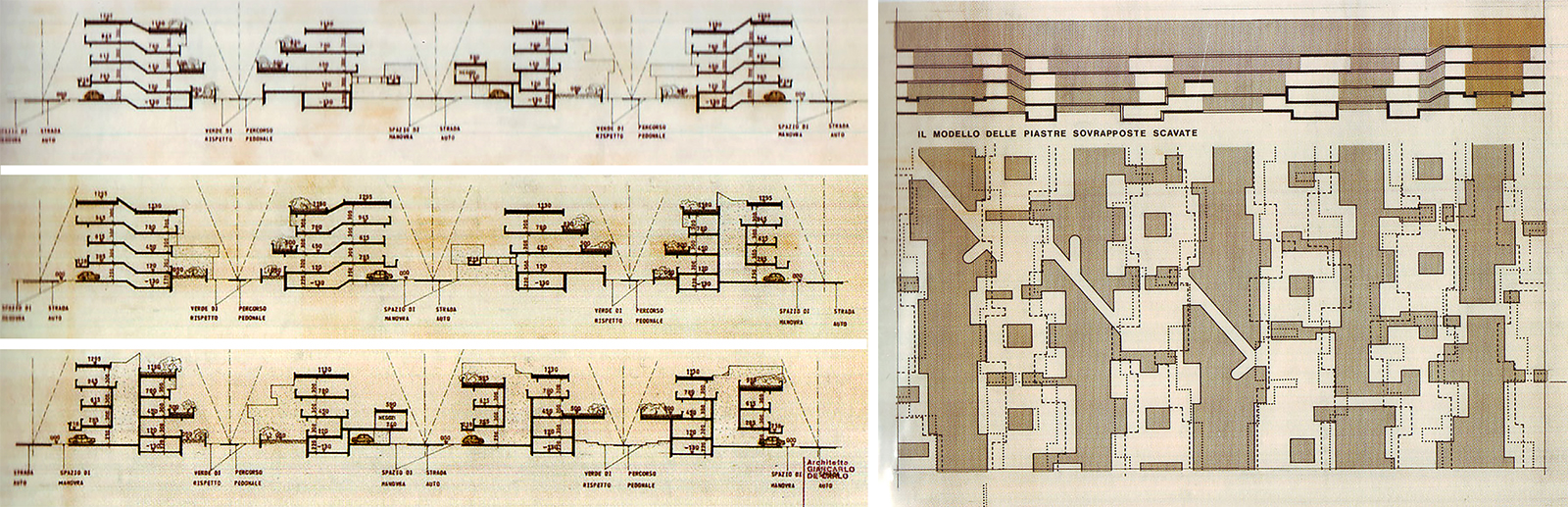 En la carta que De Carlo envió a Ripanti, uno de los directores de Terni, escribió: “La participación de usuarios (…) no descarta las discusiones con los usuarios sobre sus necesidades (cosa que he- mos hecho) ni hacerles ver cómo estas necesidades deben tomarse en cuenta en el proyecto (cosa que, espero, hagamos), sino que implica sobre todo que puedan intervenir en cada momento decisivo en el camino hacia la realización del edificio. Si se descarta que los usuarios puedan discutir los nodos burocráticos y administrativos que ocurren durante el trabajo (…), la participación recae únicamente en los aspectos decorativos para alcanzar –en el mejor de los casos– la simpatía de la GESCAL”.