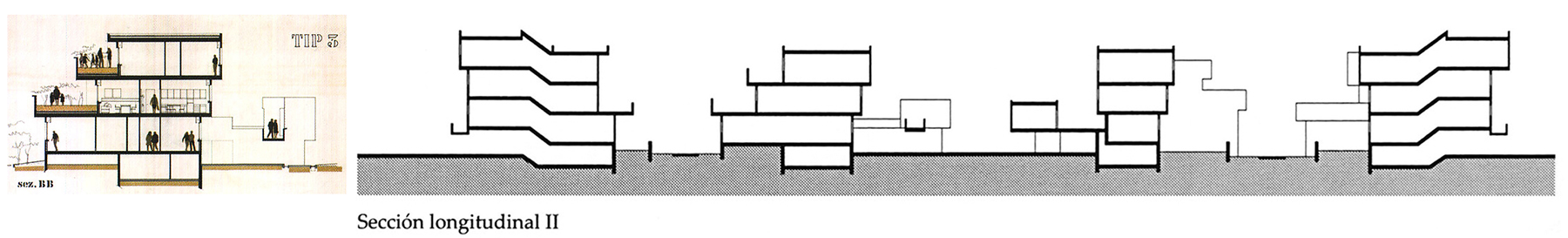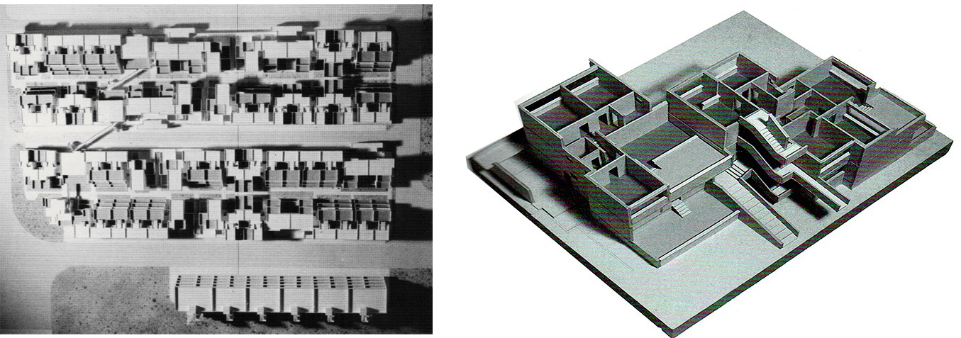 b. Como veremos, la parte más divulgada ha sido la conformación de las tipologías de vivienda y su apariencia final, no un crecimiento en altura, sino en extensión, comprobando las posibilidades de los edificios esteras (mat-buildings), que en las investigaciones más recientes han derivado hacia el término mat-housing (vivienda extensiva y de baja altura, para propiciar las relaciones vecinales, en contraposición al individualismo de la construcción en altura).