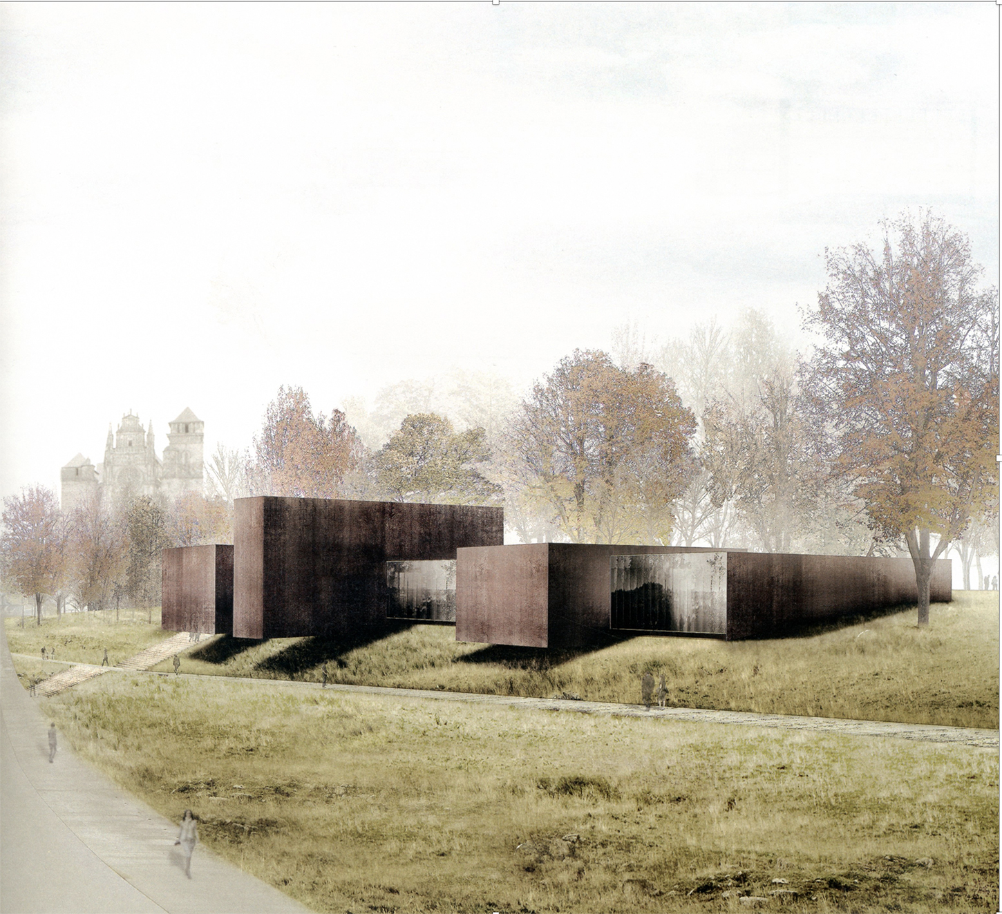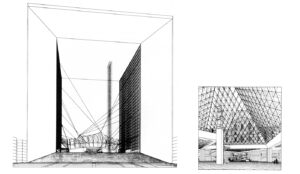Apenas uno se alejaba de ella, otros problemas aparecían, contradictorios con la ambición monumental del proyecto: a ocho kilómetros de distancia, la silueta de las torres de la Défense aparecía, anárquicamente, en el paisaje de las Tullerías y no se veía cómo salir de este desorden, salvo cerrando esta perspectiva por un gran muro escénico que habría cegado a los que estaban lejos.