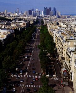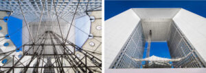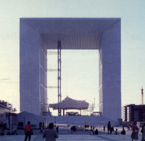 ¿Podría el Gran Arco de la Defensa ser hausmaniano? Por su arquitectura, en absoluto – no más que el conjunto de La Défense, por otra parte, que se sacrifica a la estética de la industria material- y su perfección gráfica, en absoluta contradicción con la tradición clásica de la piedra esculpida. Sin embargo, el diseño obviamente retoma las sutilezas de la escritura urbana heredada del Haussman: el sentido del sitio, el sentido del monumento y la sutileza de sus enfoques. La arquitectura de finales del siglo XX estará quizás menos marcada por sus formas que por su sentido de inserción en el paisaje urbano.