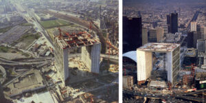 El Jurado Cecil Balmond, de Arup, admiró “el diseño tridimensional que tomó la arquitectura, la construcción y el diseño, usándolo para crear una trama urbana. Su sencilla solución estructural suspende los despachos sobre un área de concurrencia subterránea.”