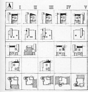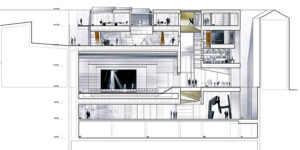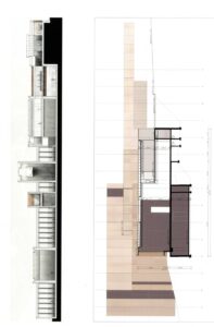 Lo que era más sorprendente era la forma en que la sección podía ser utilizada. Porque en este caso no era sólo una cuestión de ir horizontalmente para conectar el espacio existente. En este caso el baile se volvió muy emocionante porque también era posible ir verticalmente, o ir horizontalmente y luego verticalmente. O ir de forma oblicua y conectar las cosas de tal manera que las casas pudieran ser servidas desde la planta baja, o la parte superior, o el medio. Así que era posible tener una composición completamente flexible y absolutamente nueva para mí.