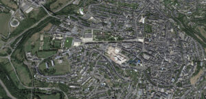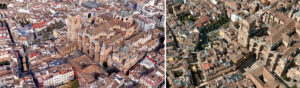 Tejido urbano del entorno de la Catedral. Puede observarse la proximidad, casi diálogo de ese conjunto y el Centro F. García Lorca.