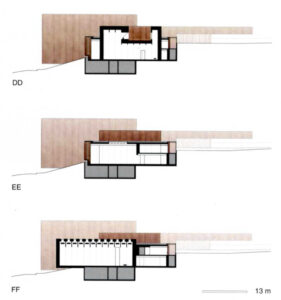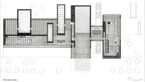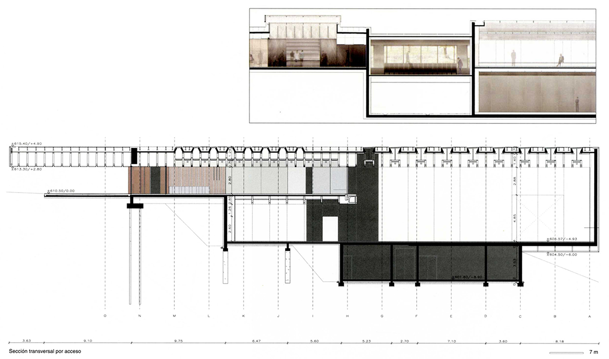Volvamos ahora al edificio y proyecto que nos ocupa. Llama la atención la importancia del umbral, desde dentro y desde fuera (pues el umbral facilita su relación dialéctica, que se percibirá con claridad en las plantas y secciones).