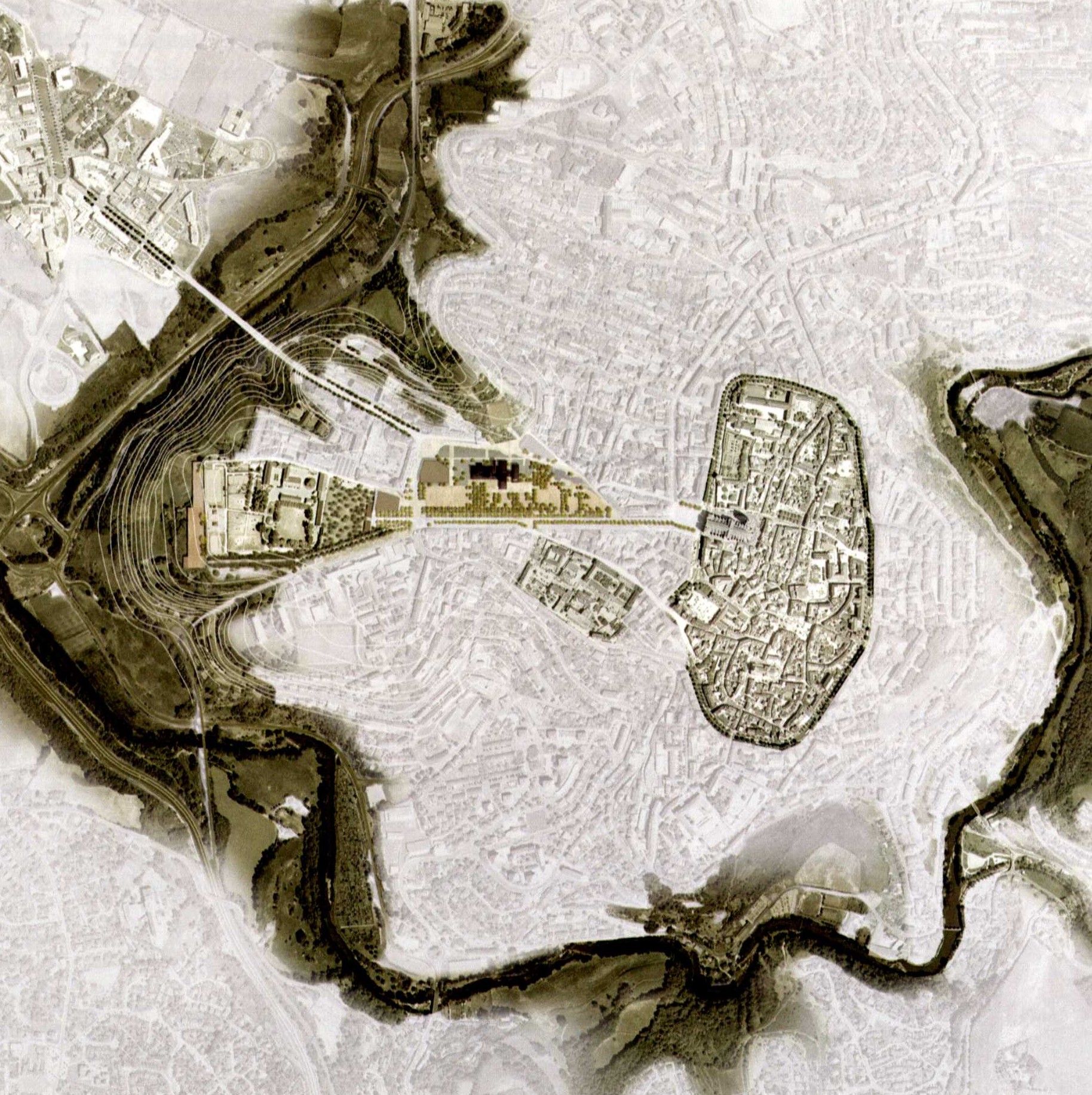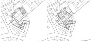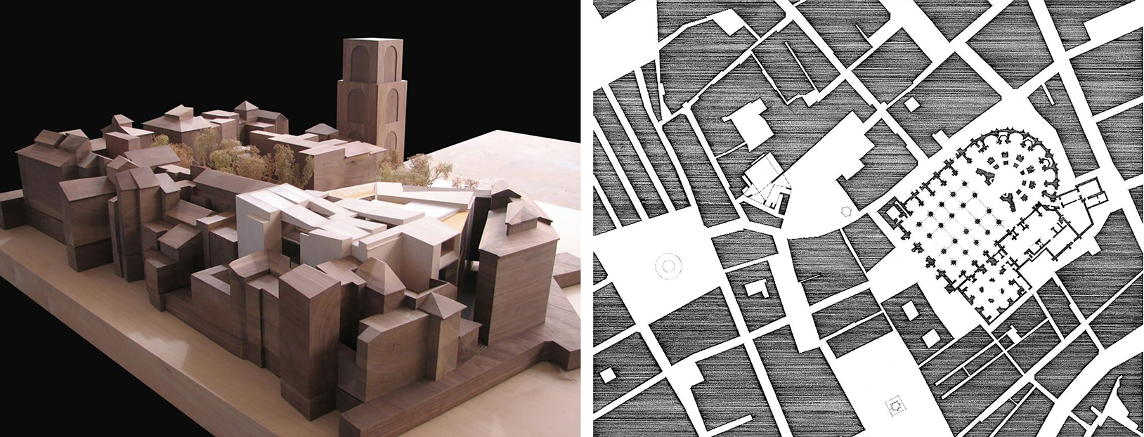 Maqueta del edificio propuesto. Lectura del entorno al modo de Nolli.