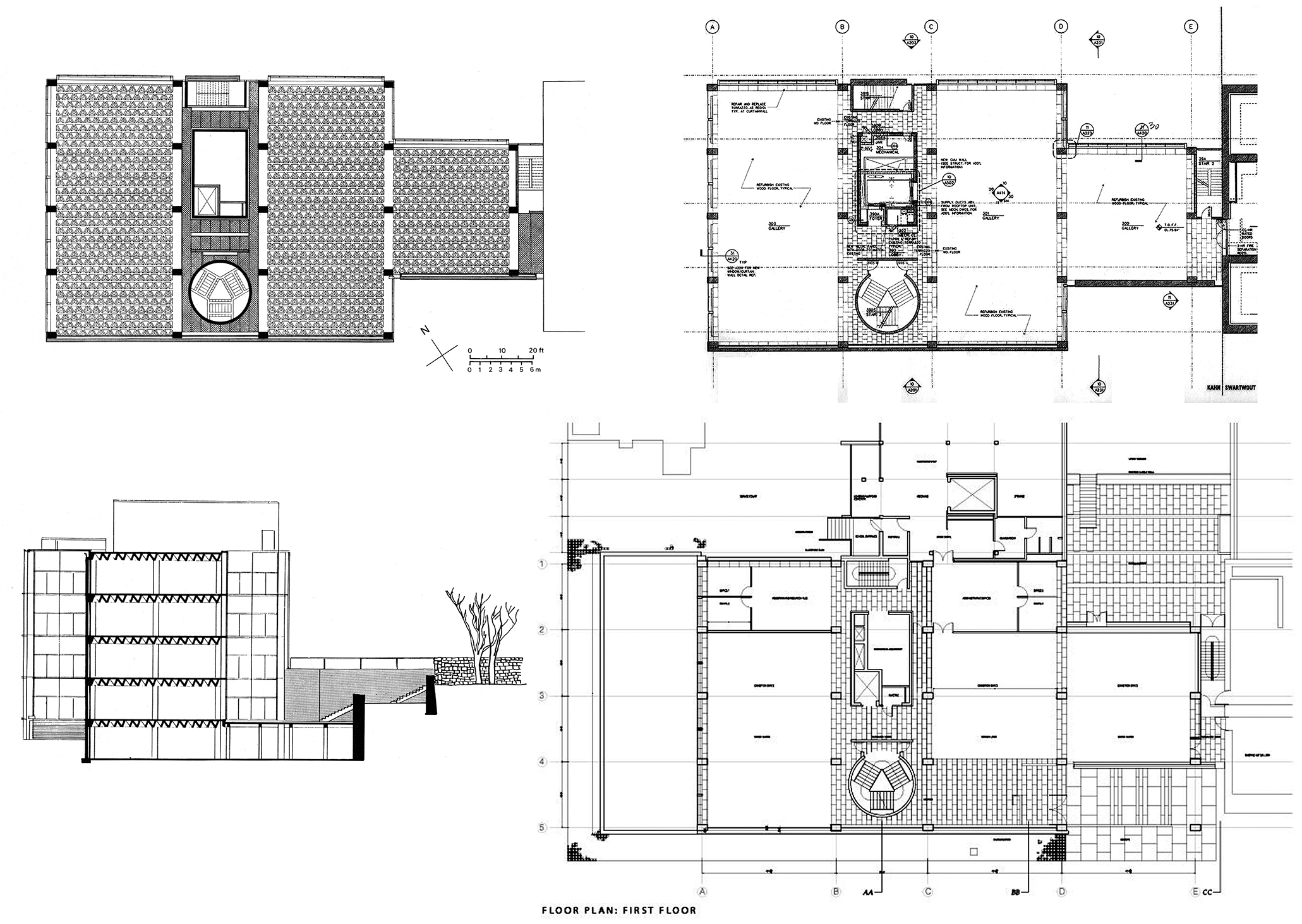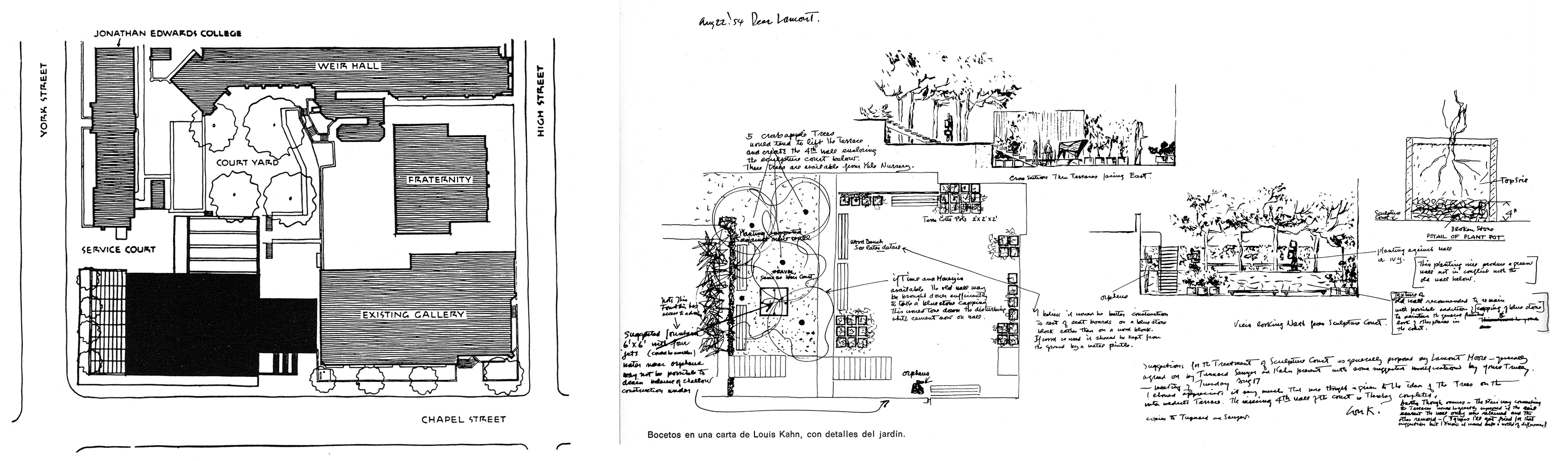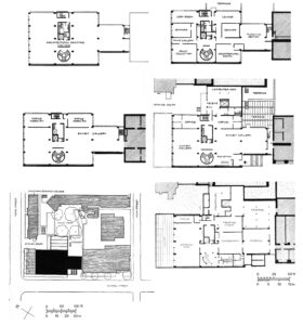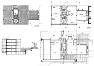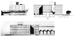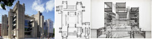 Ecos de obras divulgadas y conocidas, como la Facultad de Arquitectura de Yale, de Paul Rudolph y su espacio central abierto a las areas circundantes, bajo las barras de los pisos superiores.