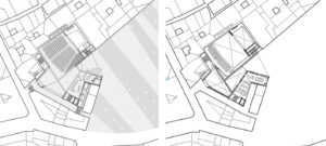 – el nuevo edificio queda articulado en ambas calles, cerrado en una y abierto en otra, ubicando allí un acceso principal.