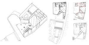 La propuesta de Grafton Architects ganó el concurso para la parcela esquinera entre V. Bligny y V. G. Röntgen, donde se aprecia la necesidad de establecer una referencia clara los primeros croquis, en las anotaciones al margen, llenas de información, y en el sistema constructivo resultante, permitiendo comprender las decisiones de diseño: