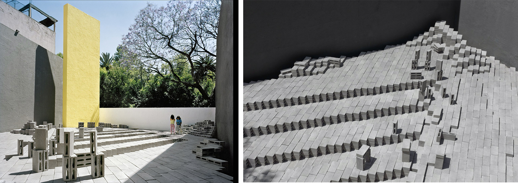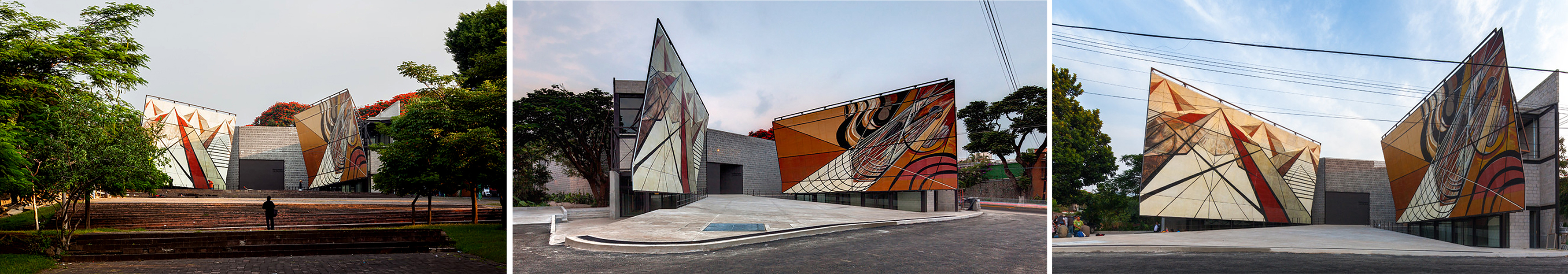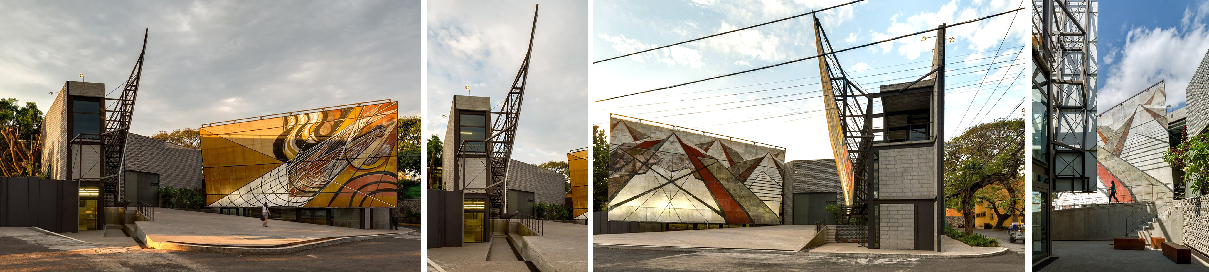 La distribución de espacios y juegos de planos –tanto murales como muros– se devela al cruzar una celosía perimetral que delimita el contexto urbano, una misma pieza escultórica horizontal que resguarda y muestra la obra de Siqueiros.