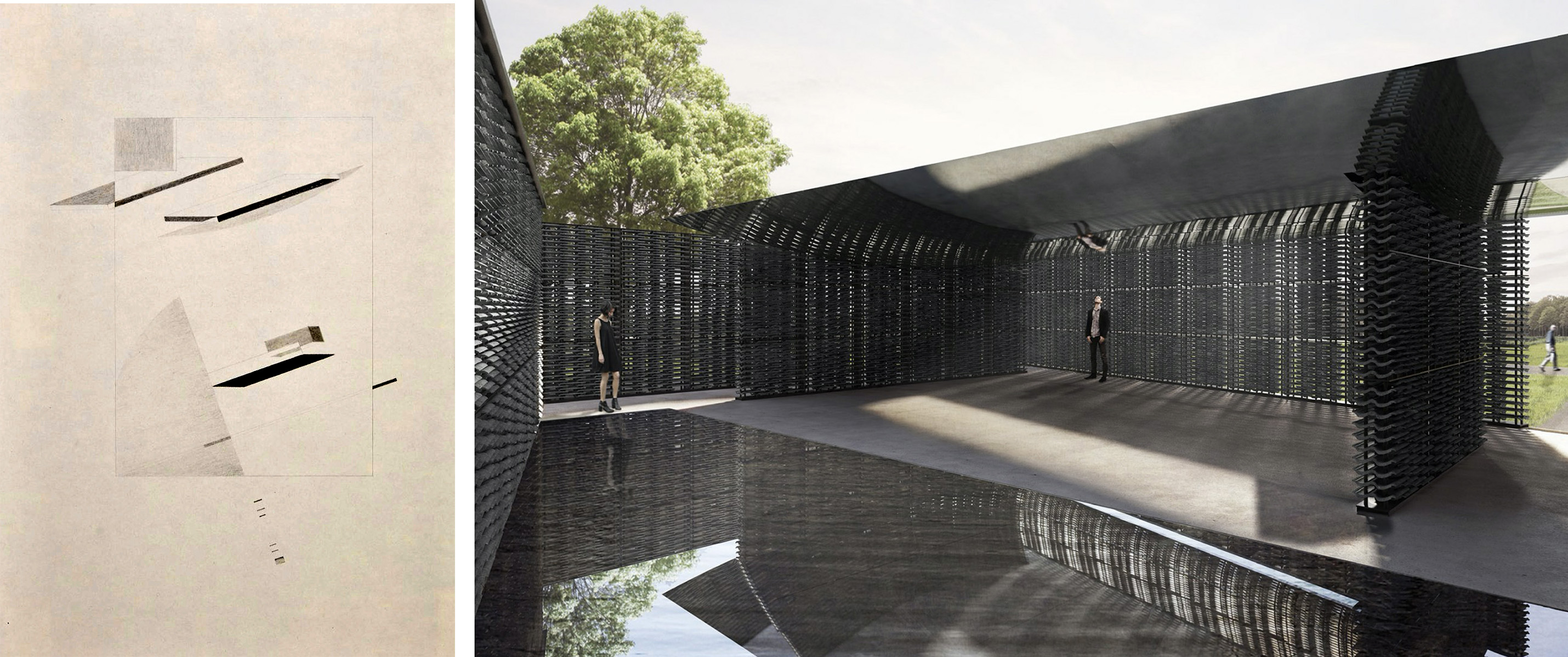 2010_Pabellón Eco_Foto Rafael Gamo.2013_Trienal de Lisboa_Escenario civico.2018_Dibujo conceptual y Pabellón Serpentine.