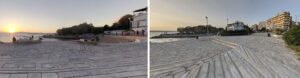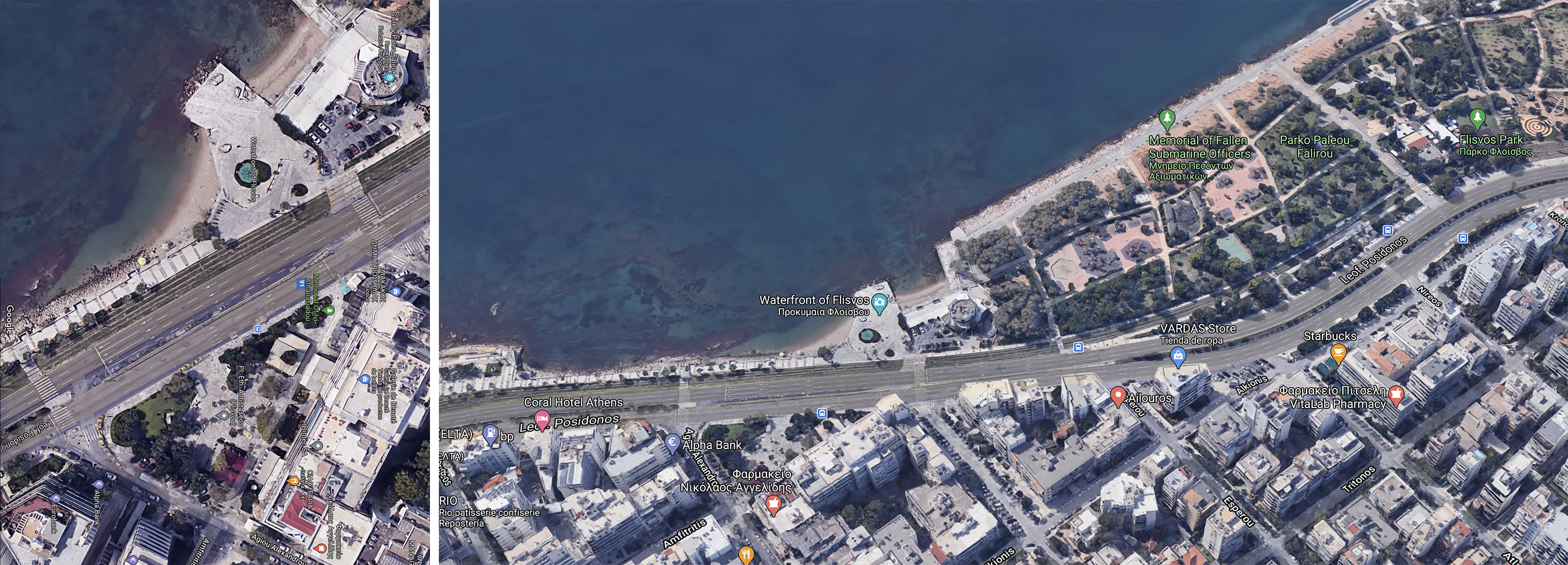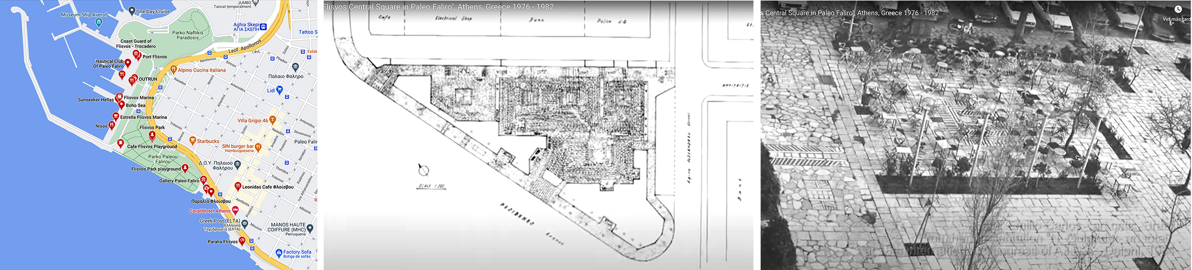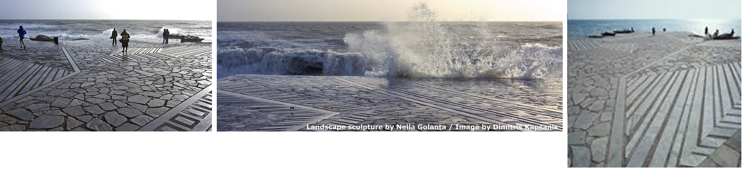 Nos dice P. Ursprung: En la primavera de 2013 estuve de viaje en Atenas con mis alumnos. Nuestros anfitriones nos llevaron a la costa y nos enseñaron cómo, en la época del boom de la construcción durante la posguerra, la expansión desregulada desconecto la ciudad de la playa. Nos dirigimos al puerto deportivo con la intención de hacer una parada en Palaio Faliro para ver el muelle escultórico de Flisvos, de la artista griega Nella Gollanda y Aspassia Kouzouri. Nuestros anfitriones habían escogido este proyecto, completado en 1986, como un ejemplo raro y exitoso de como podía hacerse accesible la playa.