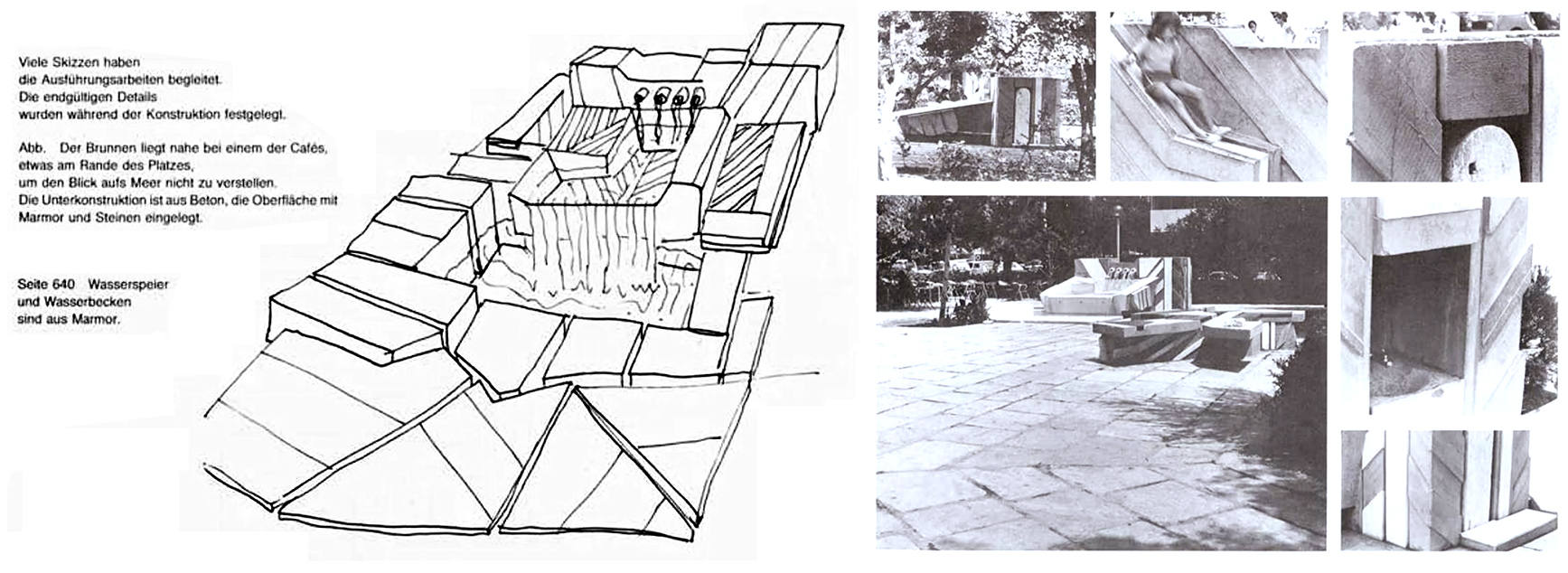 Nunca antes había estado en ese lugar, y no sabía nada de Nella Golanda hasta que llegué a Grecia. Sin embargo, sentí una especie de déjà vu. ¿En qué otro lugar había experimentado una sensación comparable de mi propia presencia dentro del entorno construido? La relación entre lo artificial y el paisaje, entre la escala pequeña y la grande, entre las losas de piedra cuidadosamente dispuestas, casi ornamentales, y la estructura general me recordaba a otros lugares que ya había visitado. A medida que daba vueltas por el muelle, sentía la superficie del mármol bajo mis zapatos y con las puntas de los dedos notaba el contraste entre el hormigón rugoso y la madera pulida de los bancos, y recordé un viaje que hice a las piletas publicas de Leça de Palmeira, construidas por Alvaro Siza cerca de Oporto a principios de la década de 1960. Unos colegas me llevaron allí hace dos años en un día demasiado frio como para bañarse. En las piletas de Siza, con sus plataformas de hormigón y escaleras que daban la impresión de haber sido añadidas directamente, o bien talladas en la roca, me sentí cercano al océano Atlántico y, a su vez, protegido por él. La costa rocosa y las intervenciones de hormigón servían de marco mutuo, por decirlo de algún modo. Me había fascinado otra conjunción similar cuando visité el estadio municipal de Braga (2003), de Eduardo Souto de Moura, donde la crudeza de la cantera existente crea un contraste con la elegante estructura de hormigón de las gradas. La oscilación entre lo visual y lo táctil, y el recorrido a seguir que ofrece la arquitectura al visitante, así como el sentido de lo teatral son cruciales en ambos arquitectos.