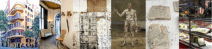 El friso/ collage que se incorpora, con imágenes de origen diverso -Francesc Torres y Santiago Ydáñez Ydáñez- dejan ver arquitecturas que pretenden mirar hacia todos lados, con voluntad orgánica y rigor racional, la continuidad de interior y exterior, lo pequeño, lo mediano y lo grande, discípulos y maestros que luchan por corporeizar una obra en ciernes, pegando partes que emergen en un proceso, la dignidad desnuda hecha añicos, el saber partido y recompuesto, haciendo difícil la continuidad del conocimiento, o ese saber hecho mercancía, mero objeto… transformado en calderilla